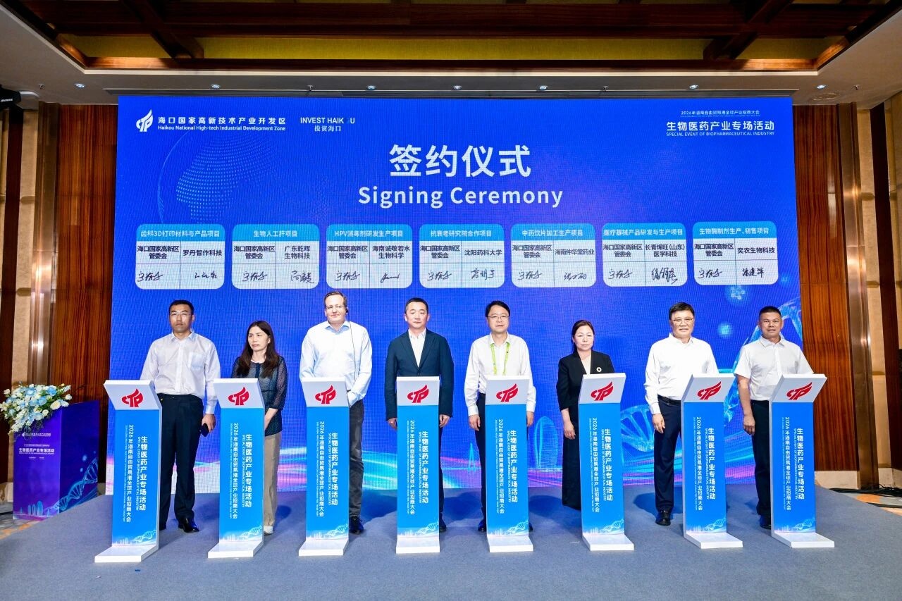 4月14日ღ◈◈ღ,2026年海南自由贸易港全球产业招商大会生物医药产业专场在海口举行ღ◈◈ღ。图为签约现场(央广网记者 付美斌 摄)